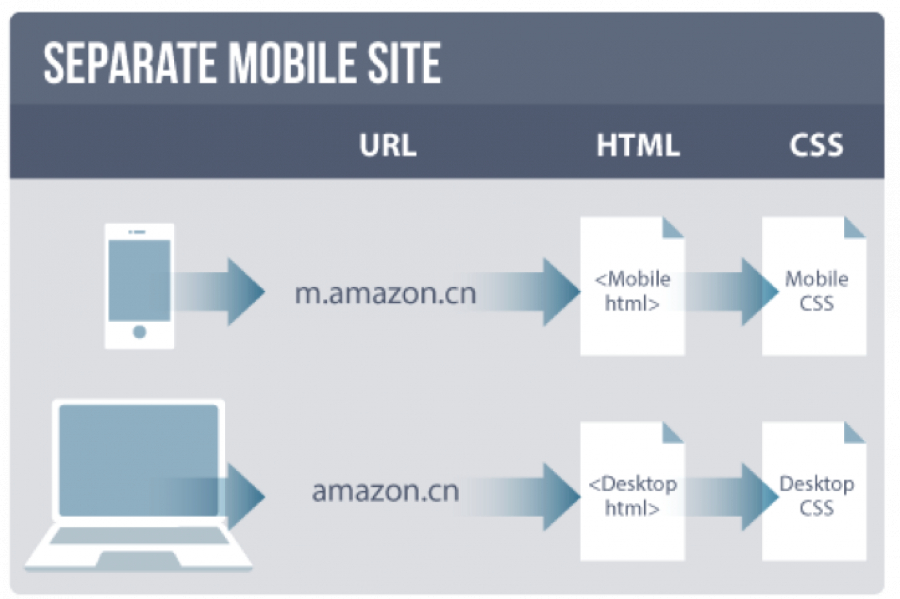 Trumpai tariant, jeigu Jums yra neprimtinas prisitaikantis dizainas kuriant mobiliąją internetinės svetainės versiją, Jūs galite kurti atskirą internetinės svetainės versiją su atskirais URL, atskiru domenu mobiliesiems, tačiau, vis tiek, daug turinio turi būti paimta iš pagrindinio puslapio.